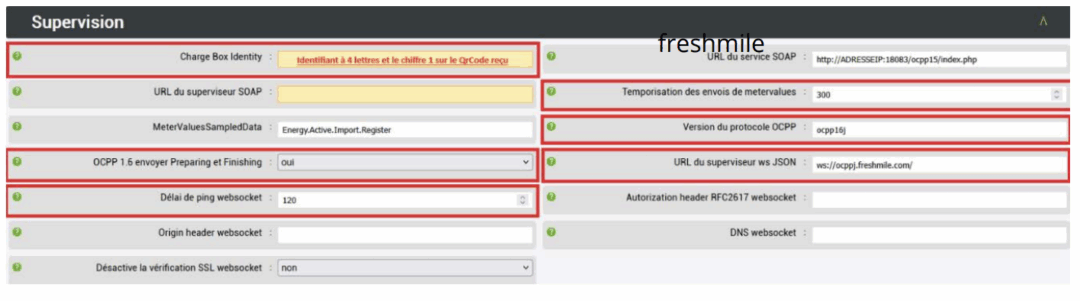 URL de Superviseur ws JSON | wss://ocppj.freshmile.com/ |