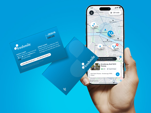 Vos collaborateurs rechargent avec l'app Freshmile ou avec une carte RFID (sur site et itinérance).